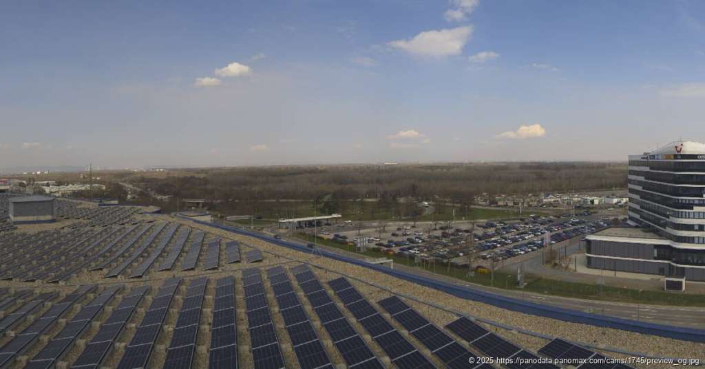 Guten Abend aus Schwechat. Status: Überwiegend bewölkt bei 10 °C.