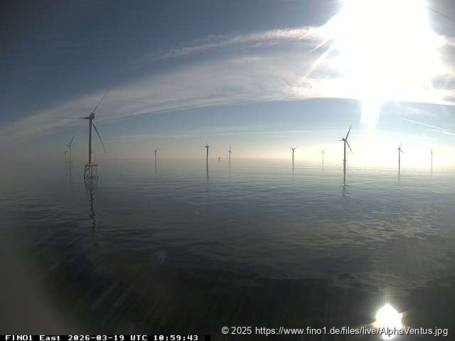 Guten Abend aus Borkum Riffgrund. Status: ruhiger Wetterlage bei 0 °C.